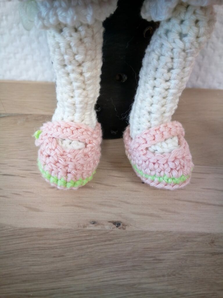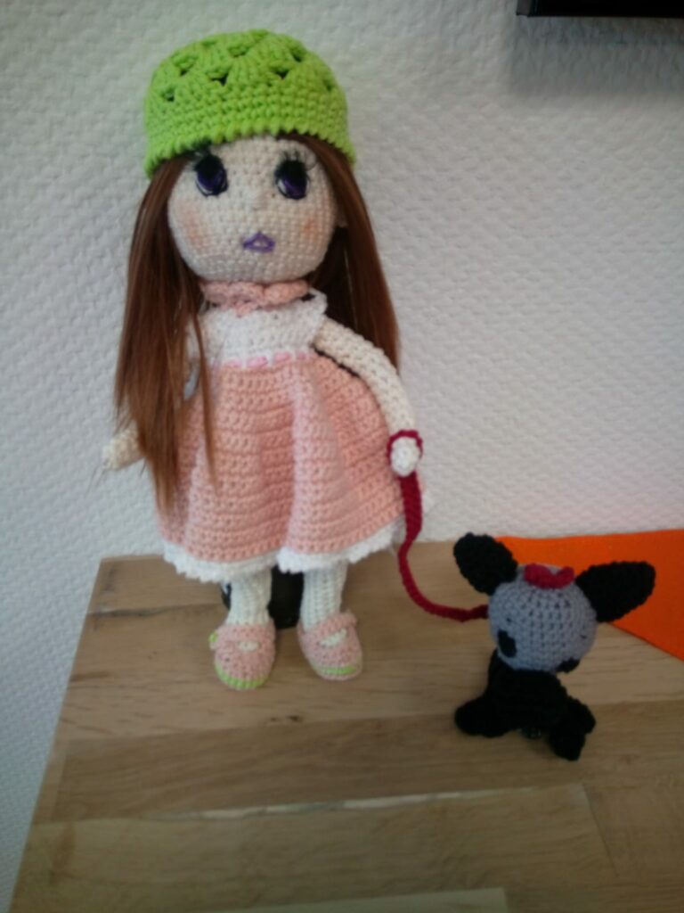 j’ai trop aimé lui crocheter cette jolie robe rose et les ballerines assorties. Coiffée d’un petit bonnet vert anis cette poupée là m’a ramenée dans un monde imaginaire ou la magie de la création a rouvert une lueur sur mon enfance perdue. Te rappelles tu ces années d’enfance ma sœur ou le monde des poupées a nous a offert cette complicité qui a façonnée notre relation toutes ces années?